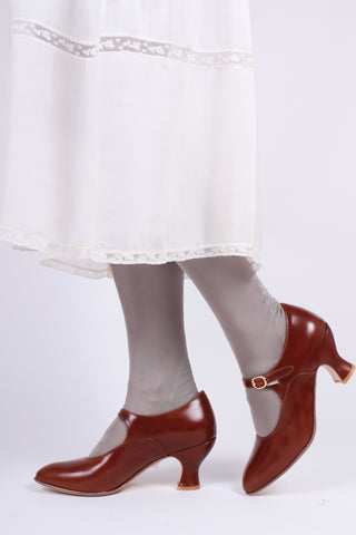 Classic, everyday late 1920's pumps - Cognac brown- Charlotte