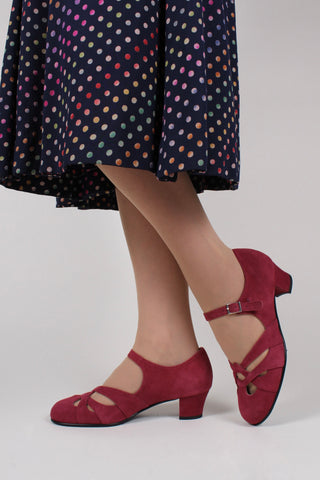 40s Derby shoes in suede - Low heel - Burgundy red -Esther