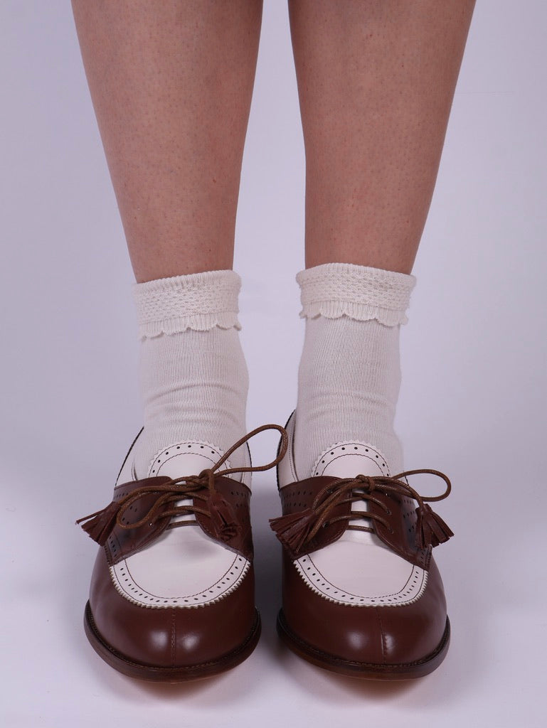 These feminine ankle socks are inspired by the teenage fashion of the late 1930s, 1940s and 1950s.