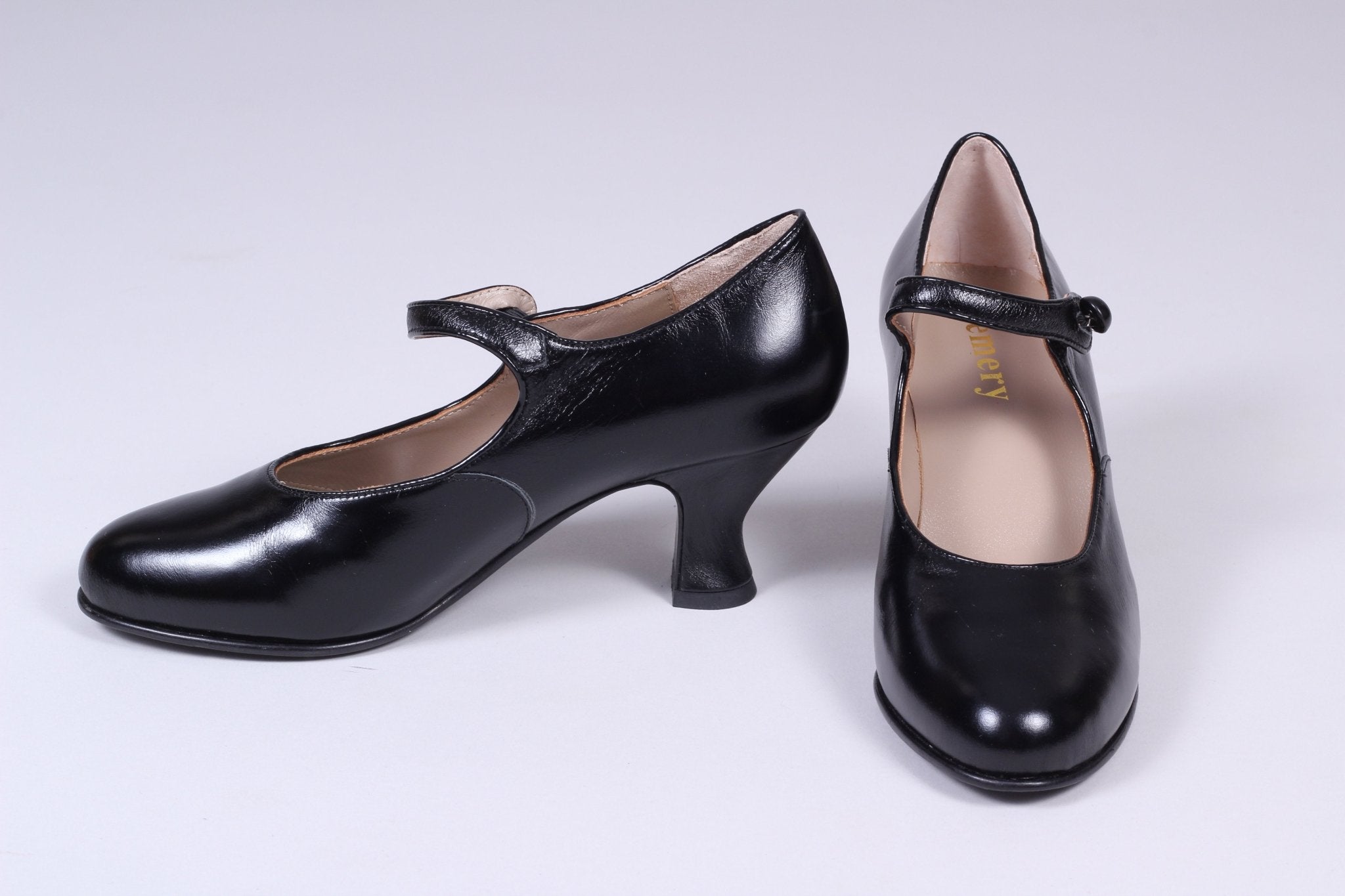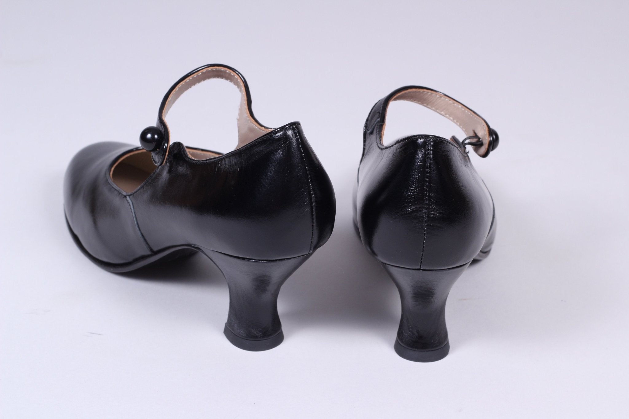 Classic 1920s-inspired Mary Jane pumps with a button for closure