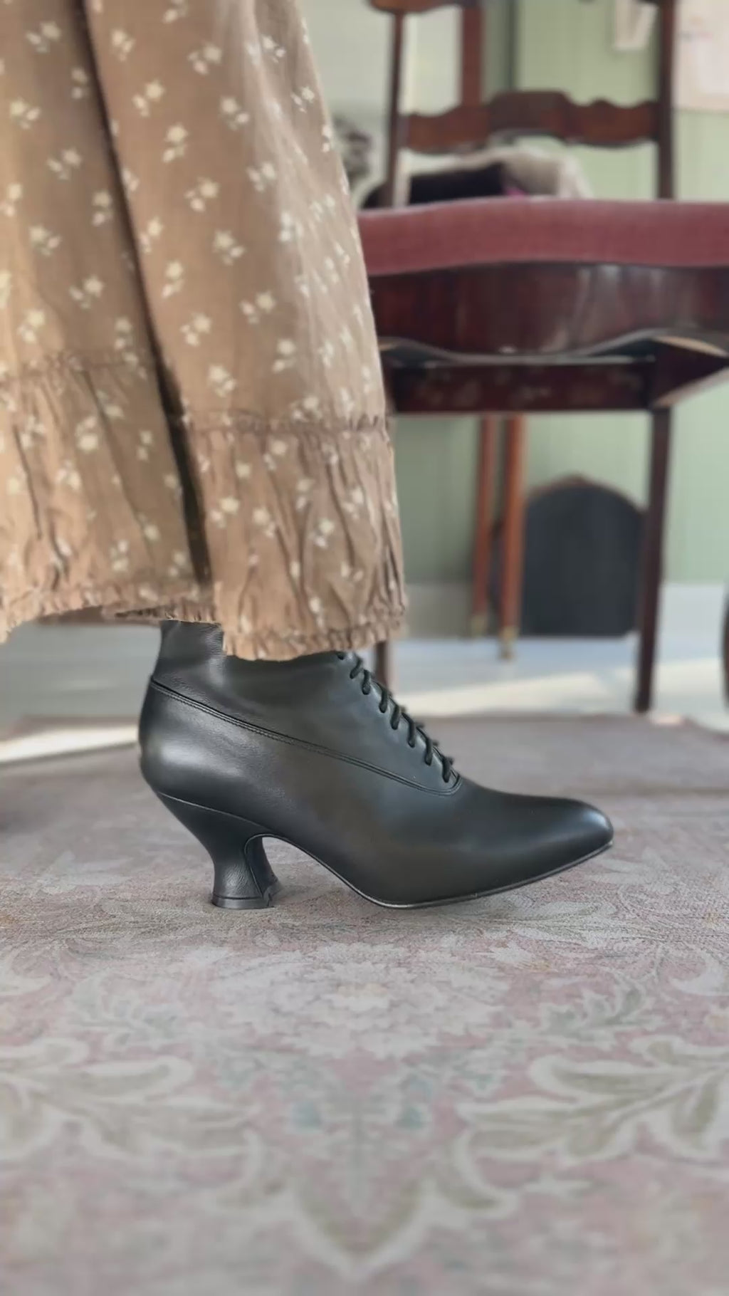 The heel is a copy of an original heel from this period so the shape is 100 true to the Edwardian period. The heel is very balanced and so comfortable when walking.