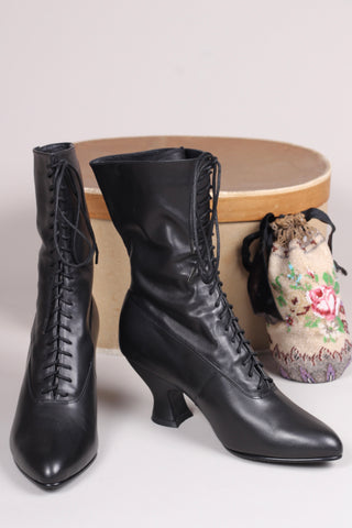 Feminine soft Edwardian boot with pompadour heel, 1900-1915 - Black - Rose