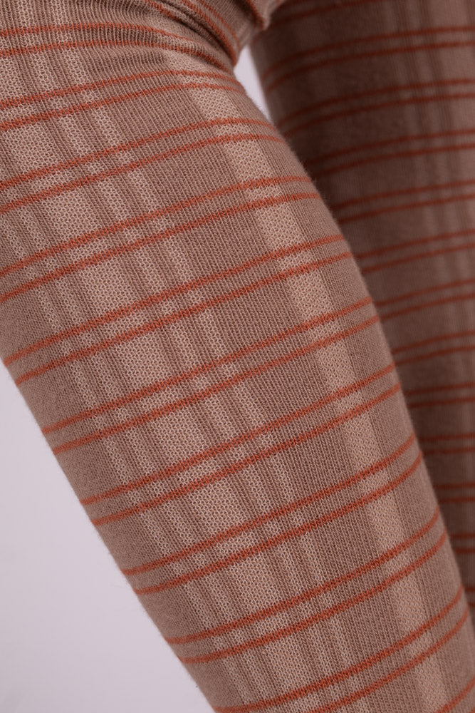 These 1920s Art Deco vintage-inspired cotton tights feature a beautiful pattern of horizontally and vertically knitted stripes. When worn, the design creates an elegant checkered pattern.