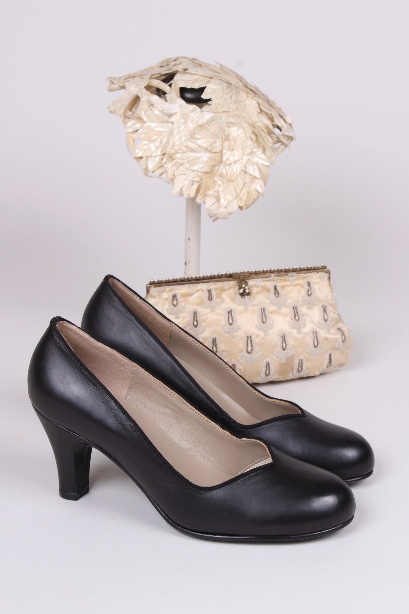 Inspired by the iconic New Look style of the late 1940s and early 1950s, these classic court shoes capture the era's timeless elegance. Crafted from soft full-grain leather, they feature a gently rounded almond toe, a low-cut front, and a beautifully feminine silhouette.